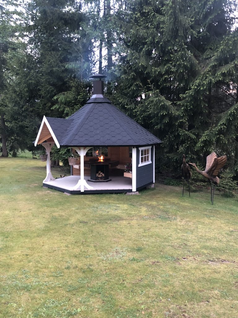 *Grillhuset levereras helt omonterat (som en byggsats). Det kan monteras av 2 personer inom 12 timmar beroende på erfarenhet. Observera att valet av omonterade produkter innebär att ta emot väggplankor utan impregnering.