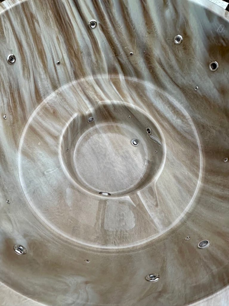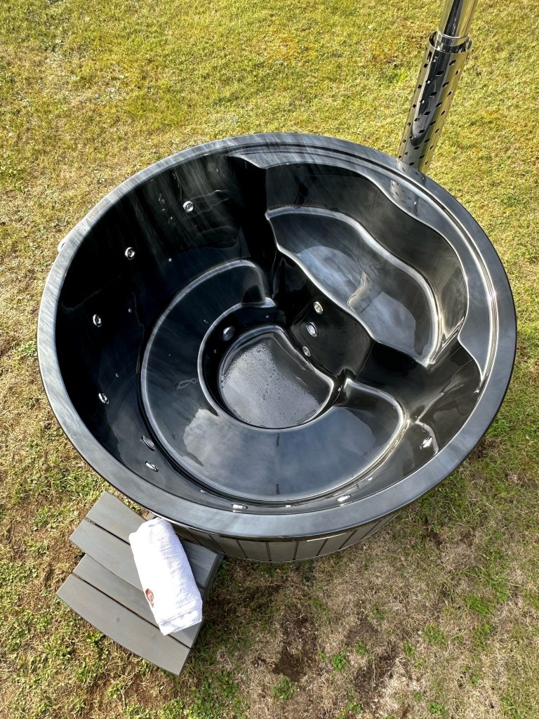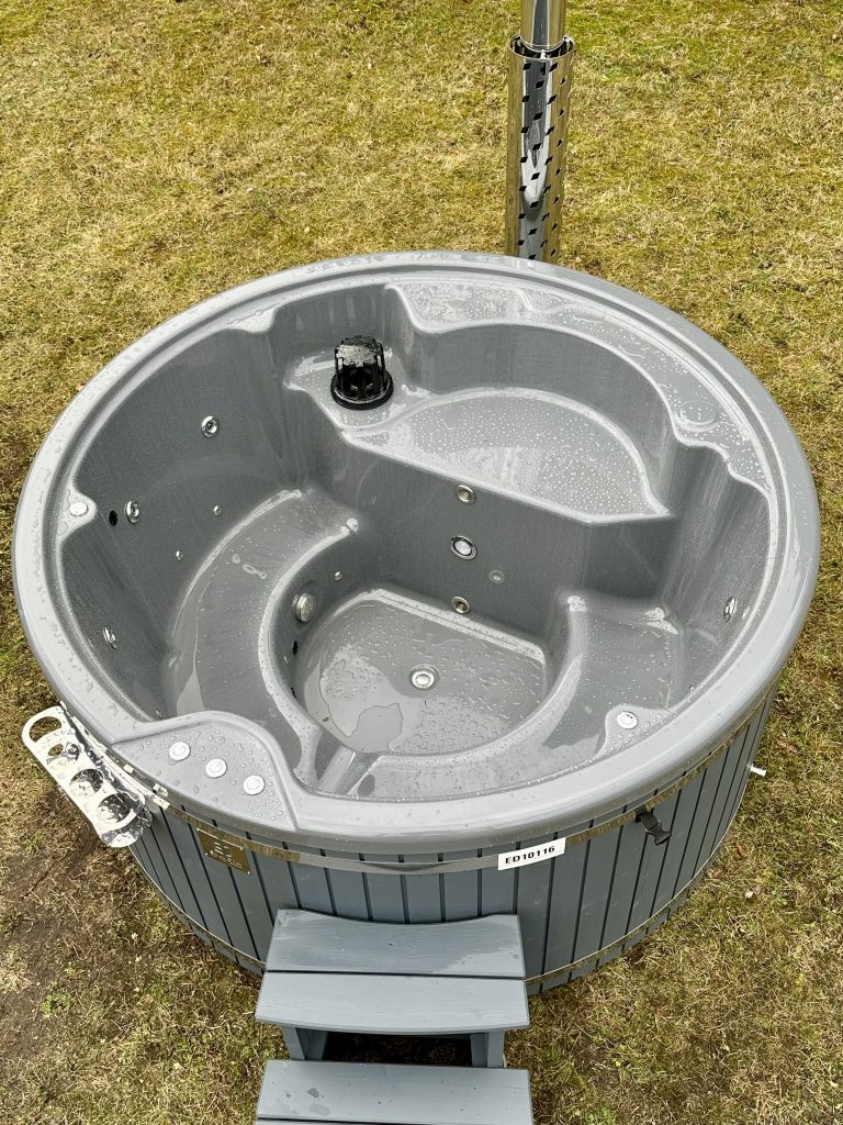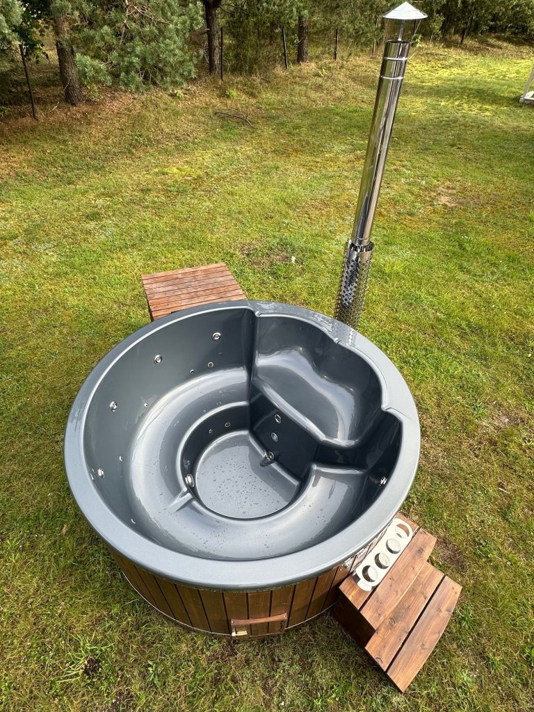 Akrylfodret, skapat med hjälp av avancerad vakuumteknik, kännetecknas av hög kvalitet, kemikaliebeständighet och reptålighet. Den lätta att underhålla och enkla sidospårbytesprocessen kräver minimal skicklighet. Böjda bänkar ger inte bara komfort, utan sparar också upp till 450 liter vatten, låter dem värmas upp snabbare och nå önskad temperatur. Dessa badkar kan värmas på en mängd olika sätt, så det förblir en modern, effektiv och miljövänlig lösning.