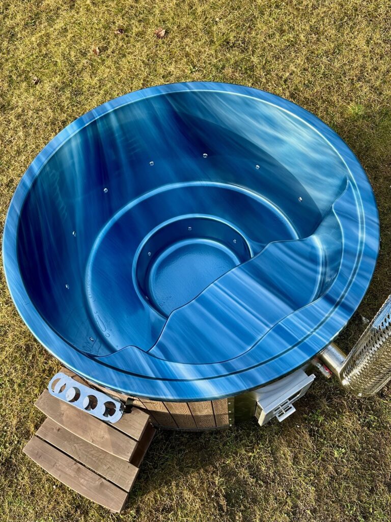 Akrylfodret, skapat med hjälp av avancerad vakuumteknik, kännetecknas av hög kvalitet, kemikaliebeständighet och reptålighet. Den lätta att underhålla och enkla sidospårbytesprocessen kräver minimal skicklighet. Böjda bänkar ger inte bara komfort, utan sparar också upp till 450 liter vatten, låter dem värmas upp snabbare och nå önskad temperatur. Dessa badkar kan värmas på en mängd olika sätt, så det förblir en modern, effektiv och miljövänlig lösning.