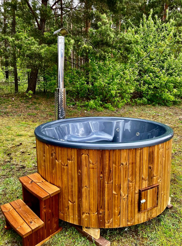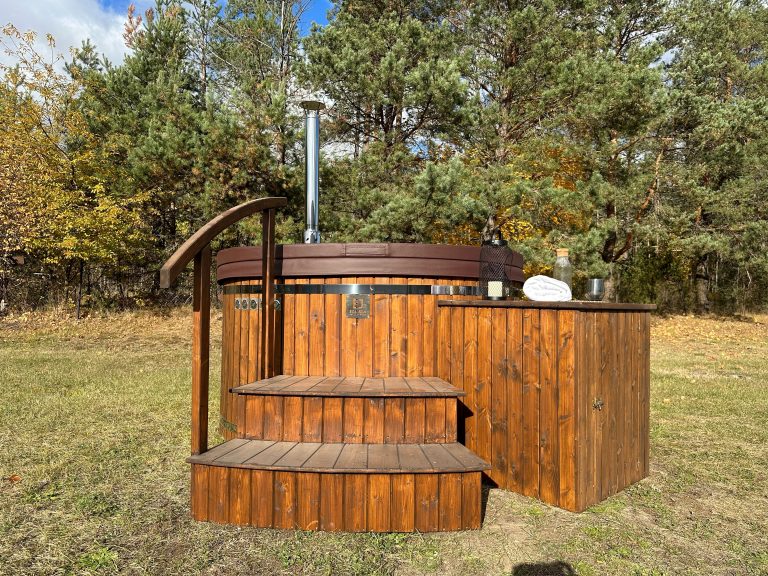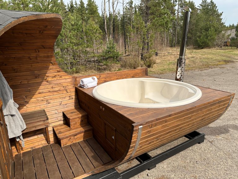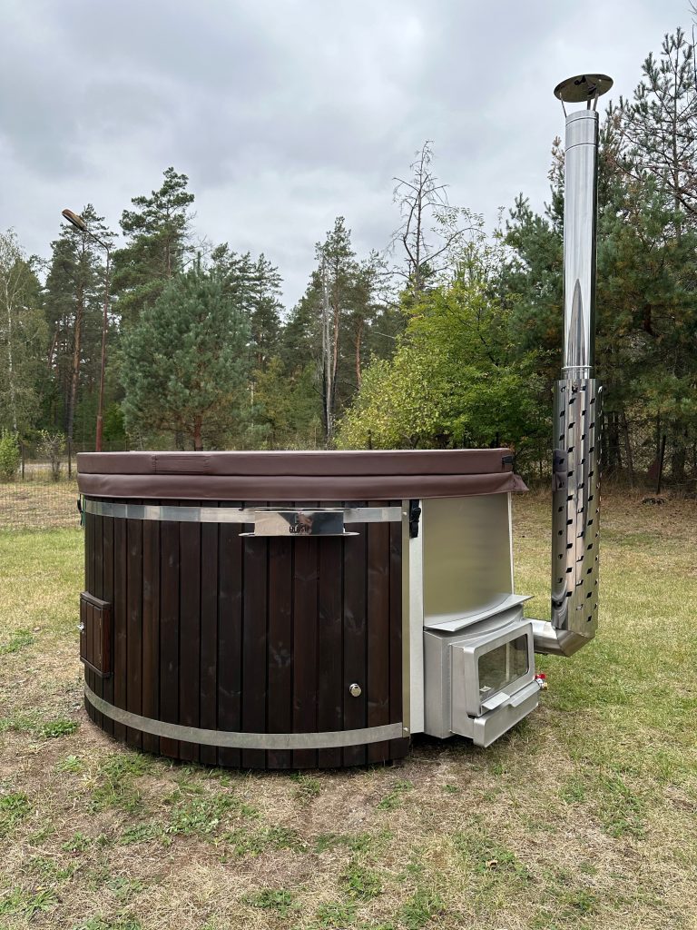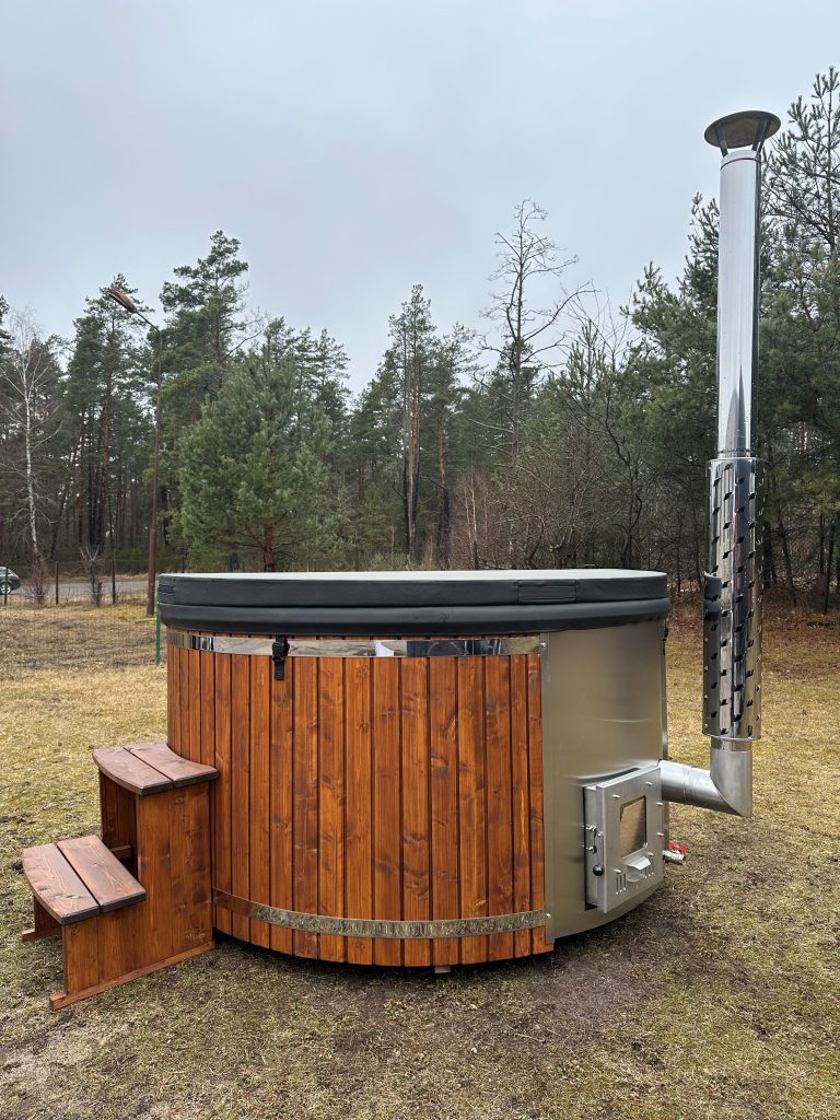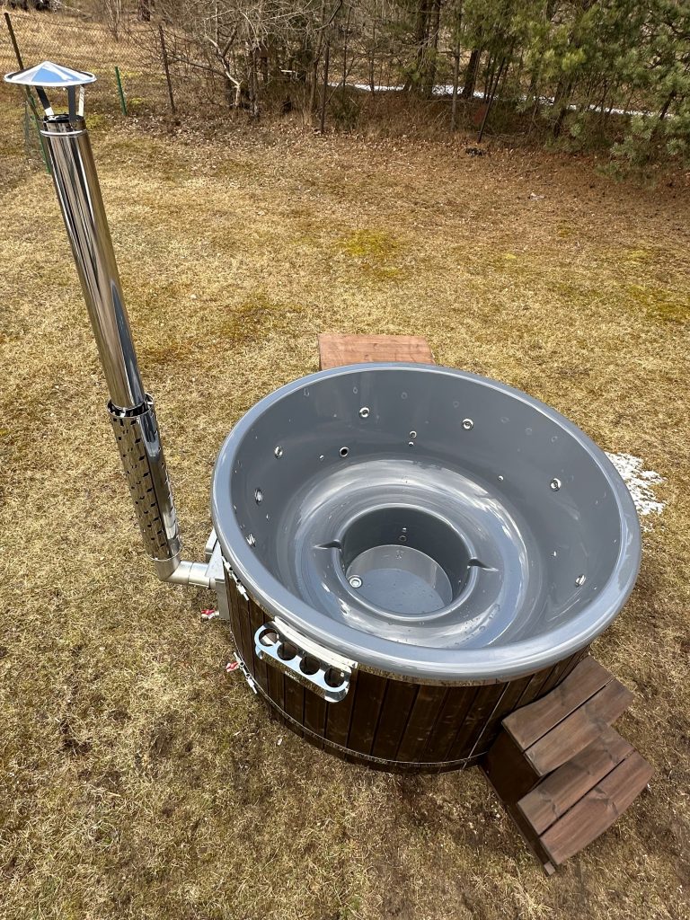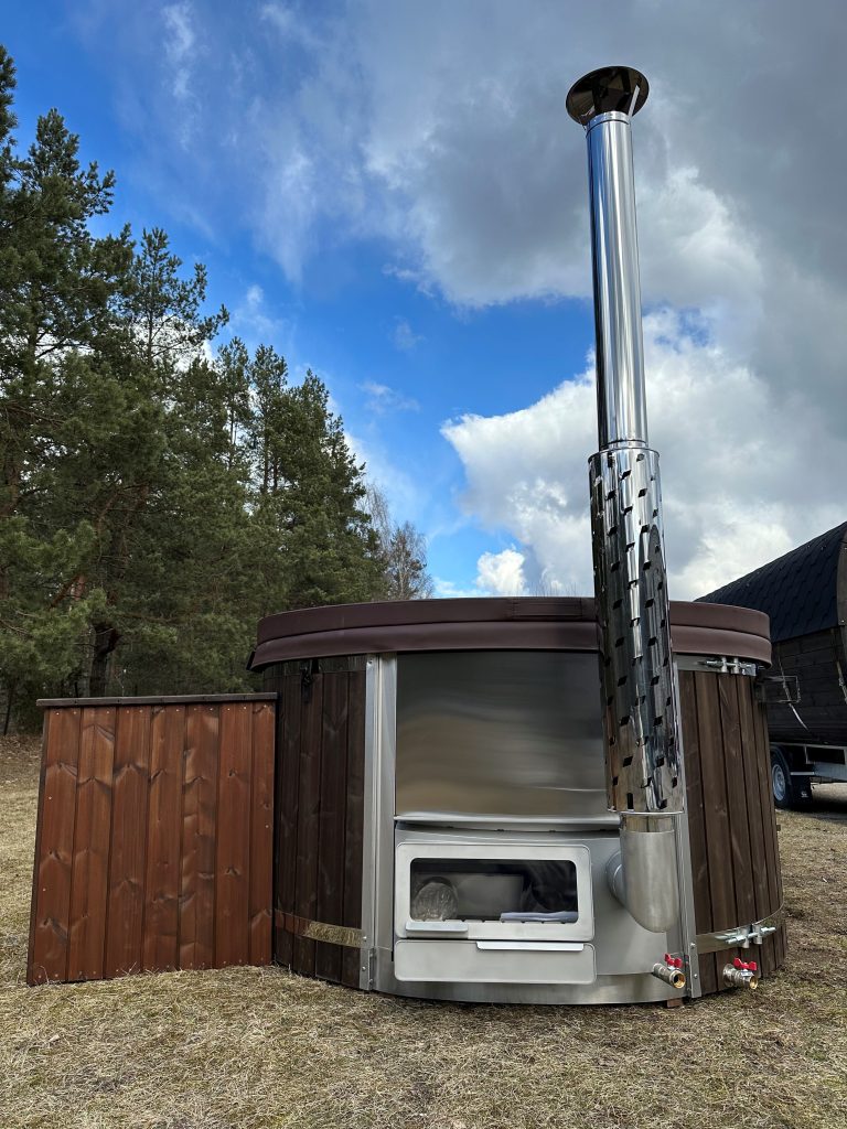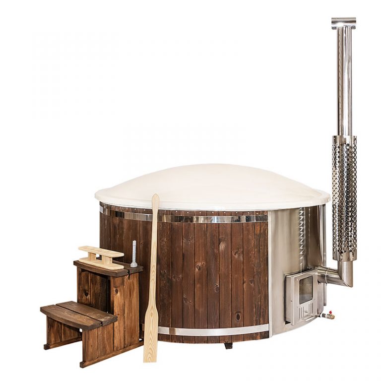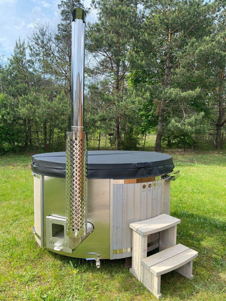 En intern värmare ger en snabbare uppvärmningstid än en extern vedeldad kamin eftersom det nästan inte finns något värmeförlust. Den interna kaminen förbrukar cirka 25% av badtunnans utrymme, men en träbadtunna på 180 cm kan fortfarande rymma upp till 6 personer. En intern värmare ger en mer mysig känsla eftersom du kan sitta nära elden, men det finns också några nackdelar – interna värmare kan vara farliga för barn och det tar längre tid att rengöra dem.