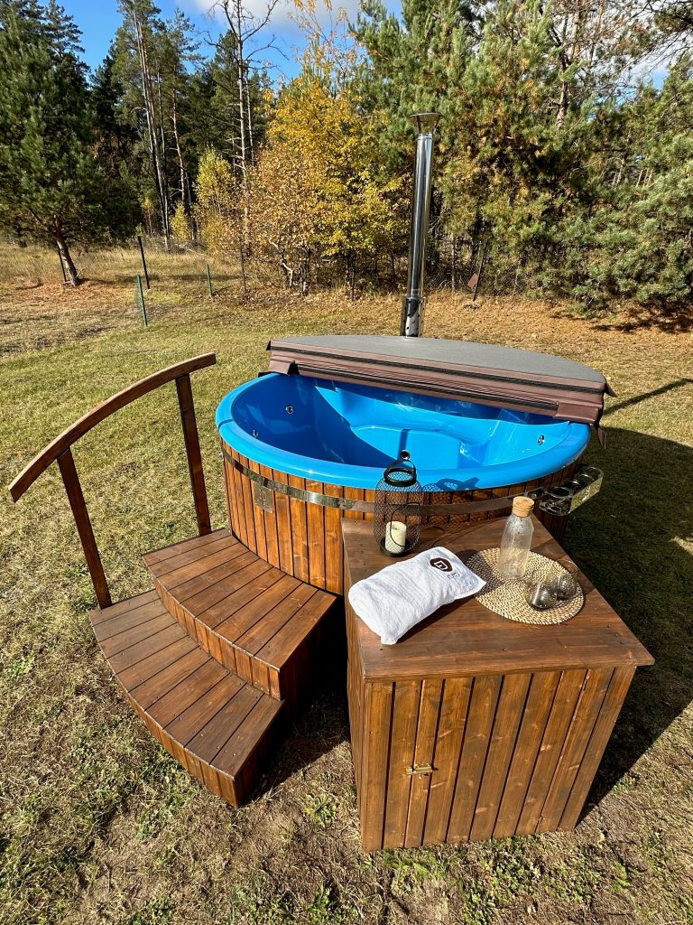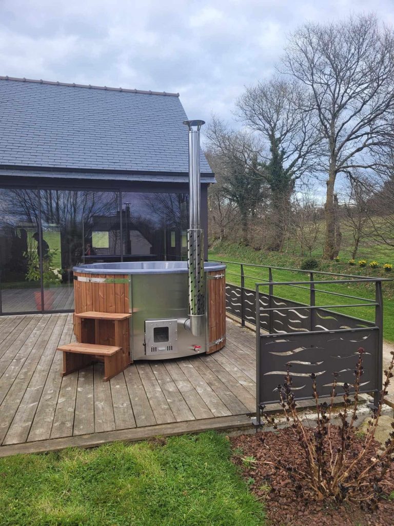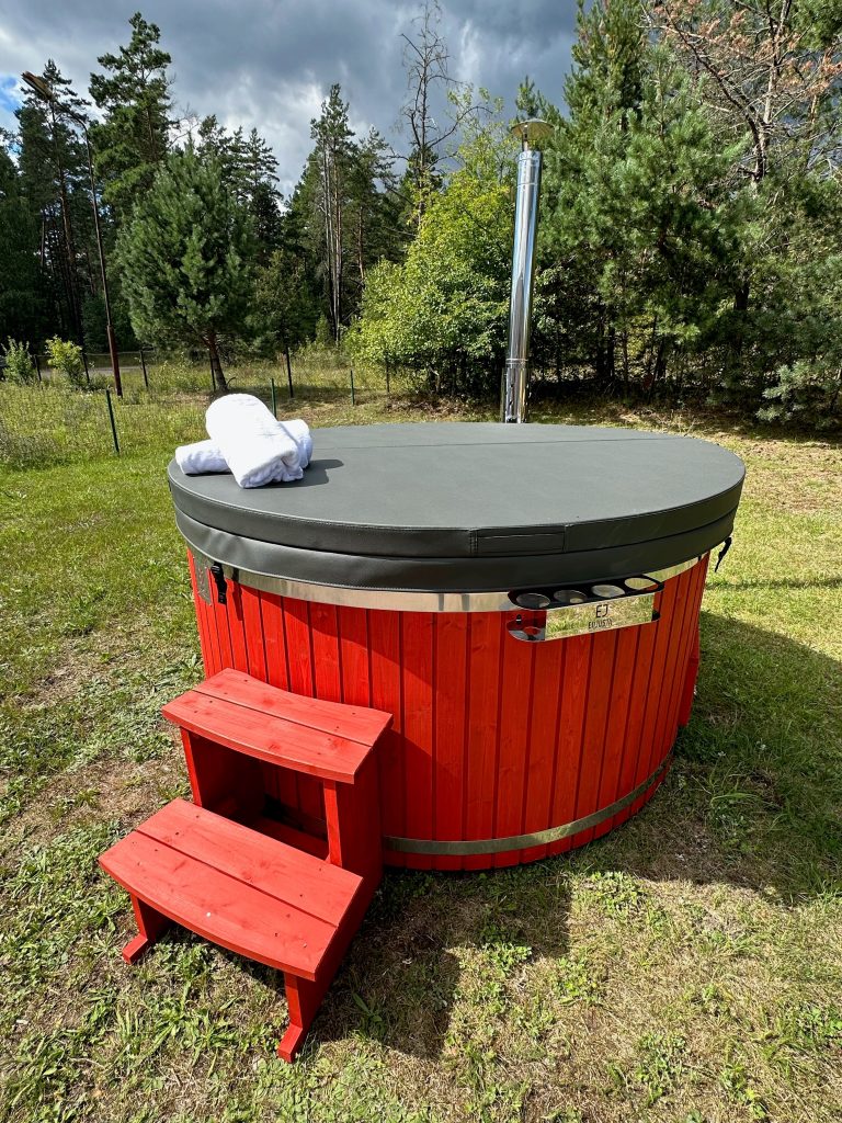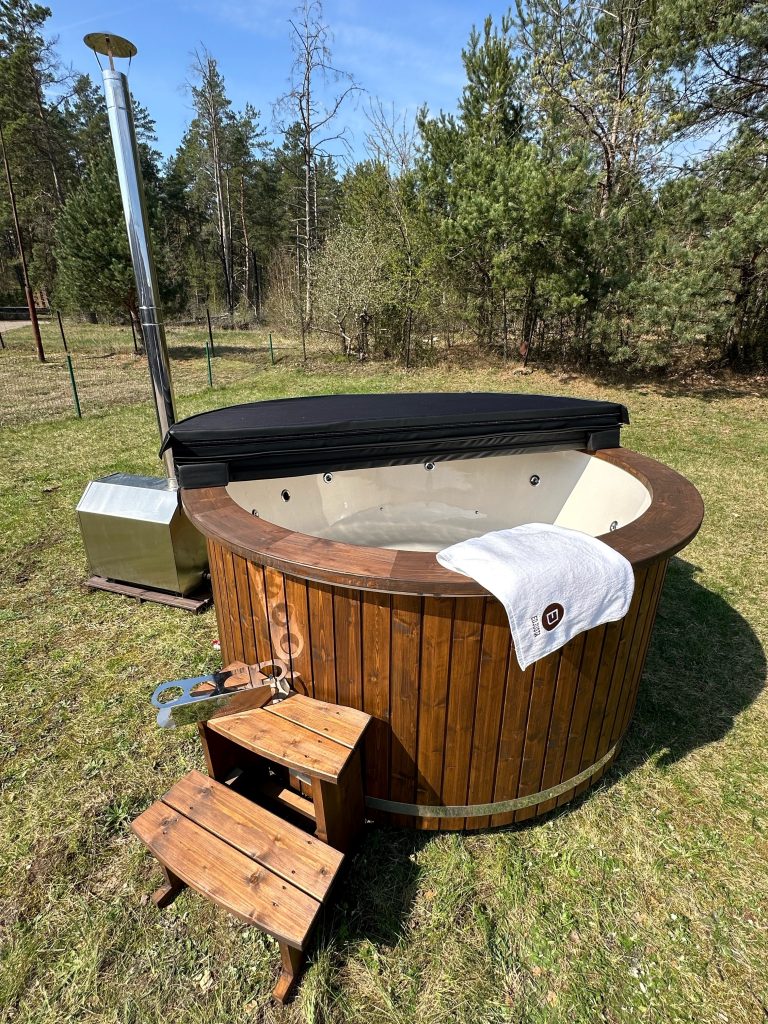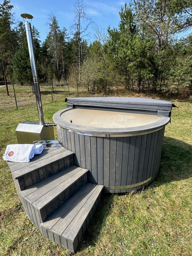 En extern vedeldad värmare erbjuder mer utrymme i badtunnan och är också mer barnvänlig eftersom spisen installeras utanför badtunnan. Du kommer dock att behöva mer plats för att installera den. Det tar mindre tid att rengöra insidan av badtunnan, och det är också lättare att ta bort askan från den externa värmaren utan att förorena vattnet. Uppvärmningstiden för badtunnan blir något längre (cirka 30 minuter extra jämfört med en intern värmare). Externa värmare är också något dyrare, och dessutom måste du se till att värmaren töms om du förväntar dig frost.
