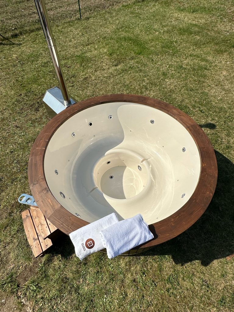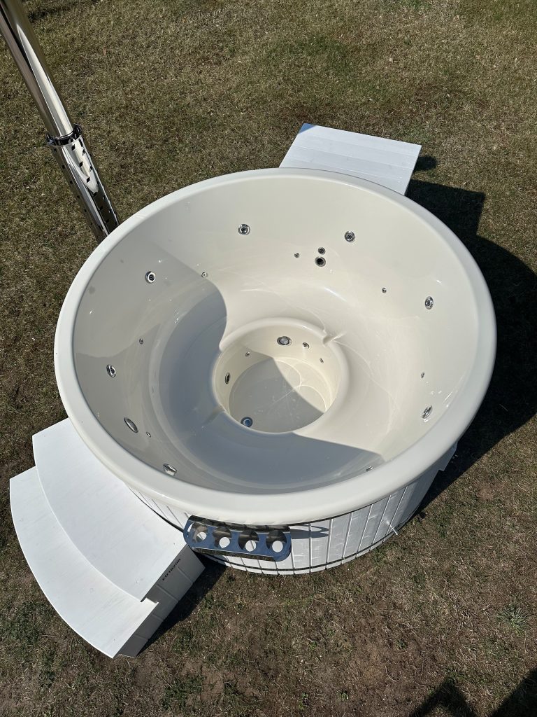 Fiberglastunnor ger det optimala förhållandet mellan pris och prestanda. Fördelen med dessa tunnor är att den träexteriören kan ersättas enkelt utan att behöva byta hela badtunnan. Till skillnad från andra tunnor är insatsen i badtunnan gjord av en enda bit av fiberglasväv med böjda bänkar vilket gör att du kan spara upp till 500 liter vatten. Endast fiberglastunnor levereras med en integrerad värmare inuti, vilket ger dem en särskilt elegant och lyxig look. De har heller inga ytterligare exteriöra detaljer som kräver extra utrymme. Fiberglastunnan är en hållbar produkt som inte kräver några ytterligare investeringar eller kostnader. Fördelen med en sådan produkt är att den är extremt lätt att underhålla.