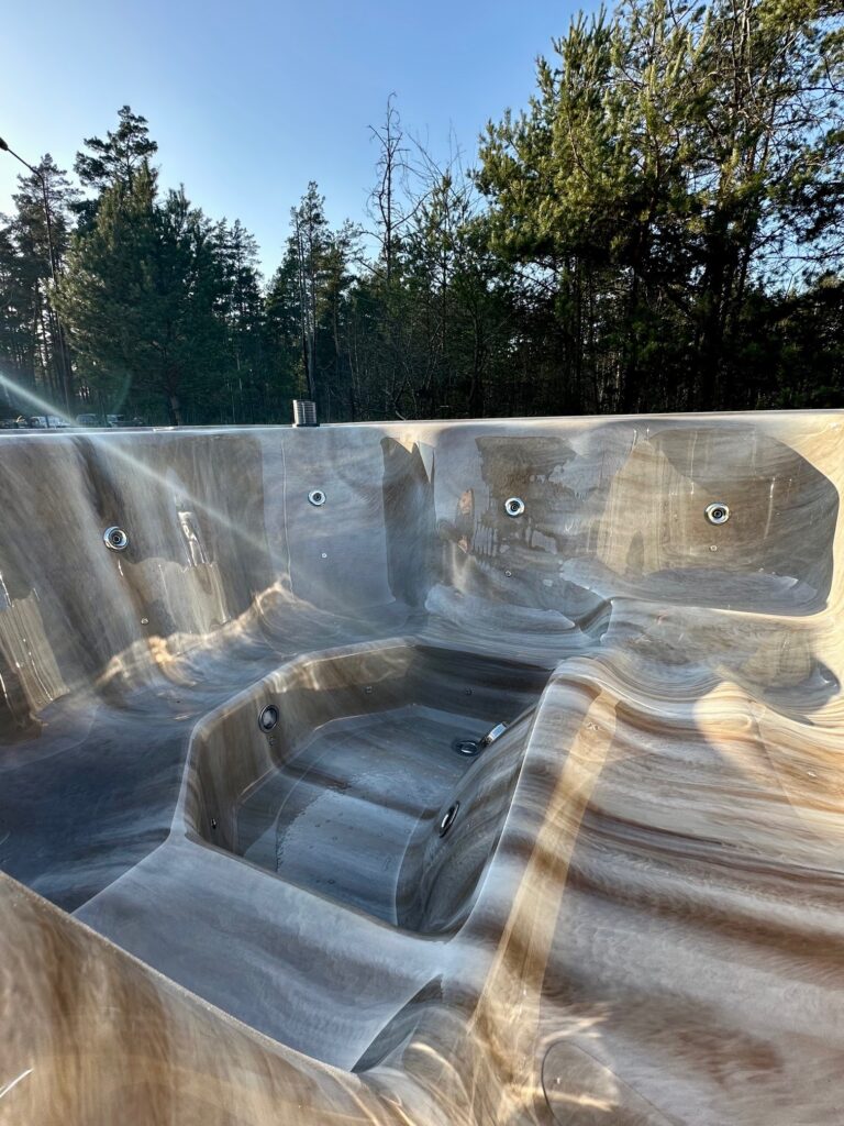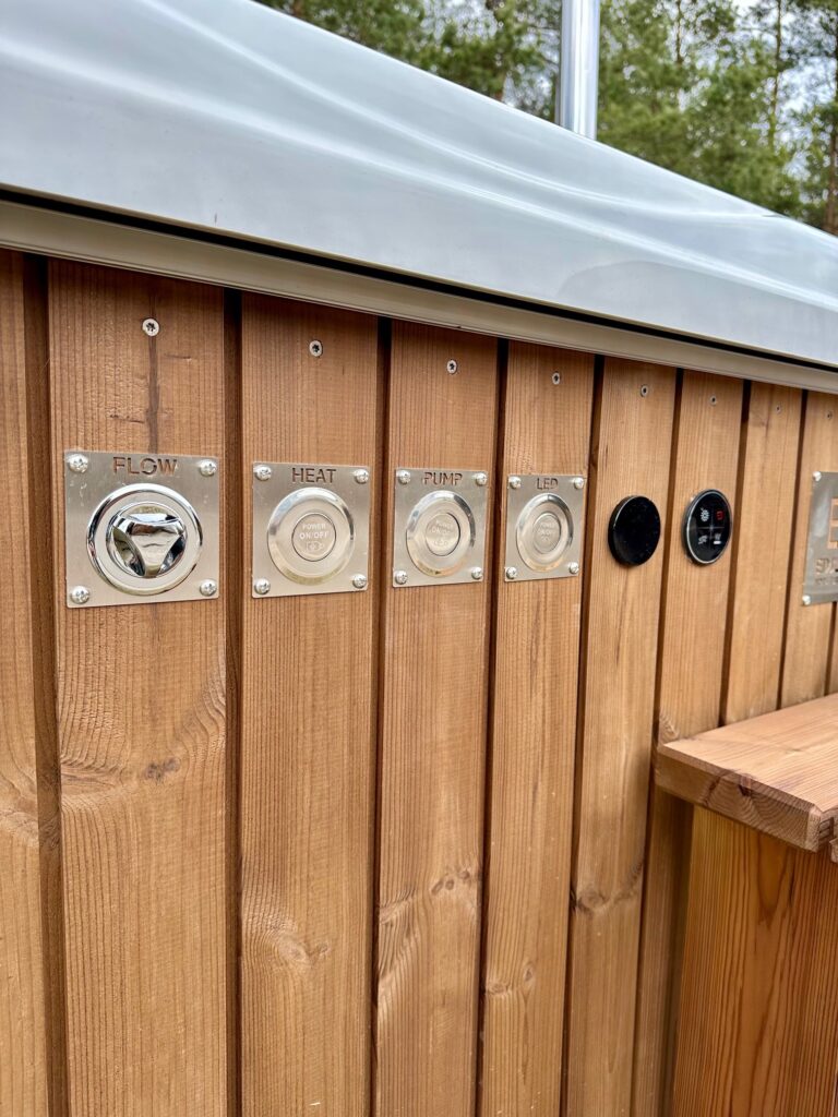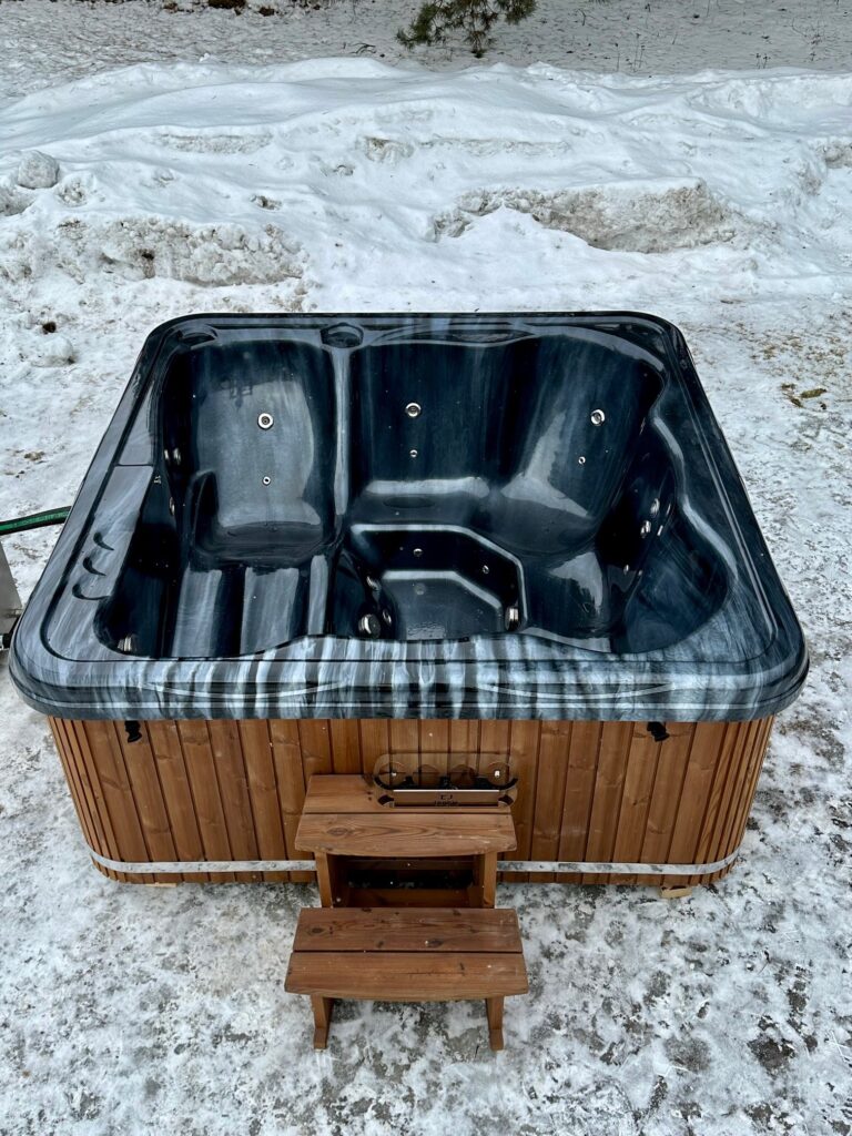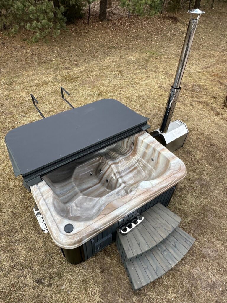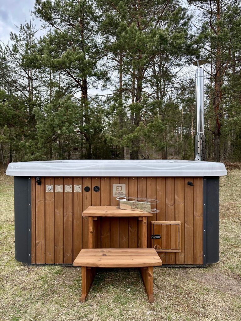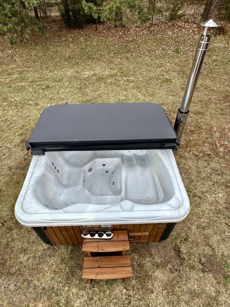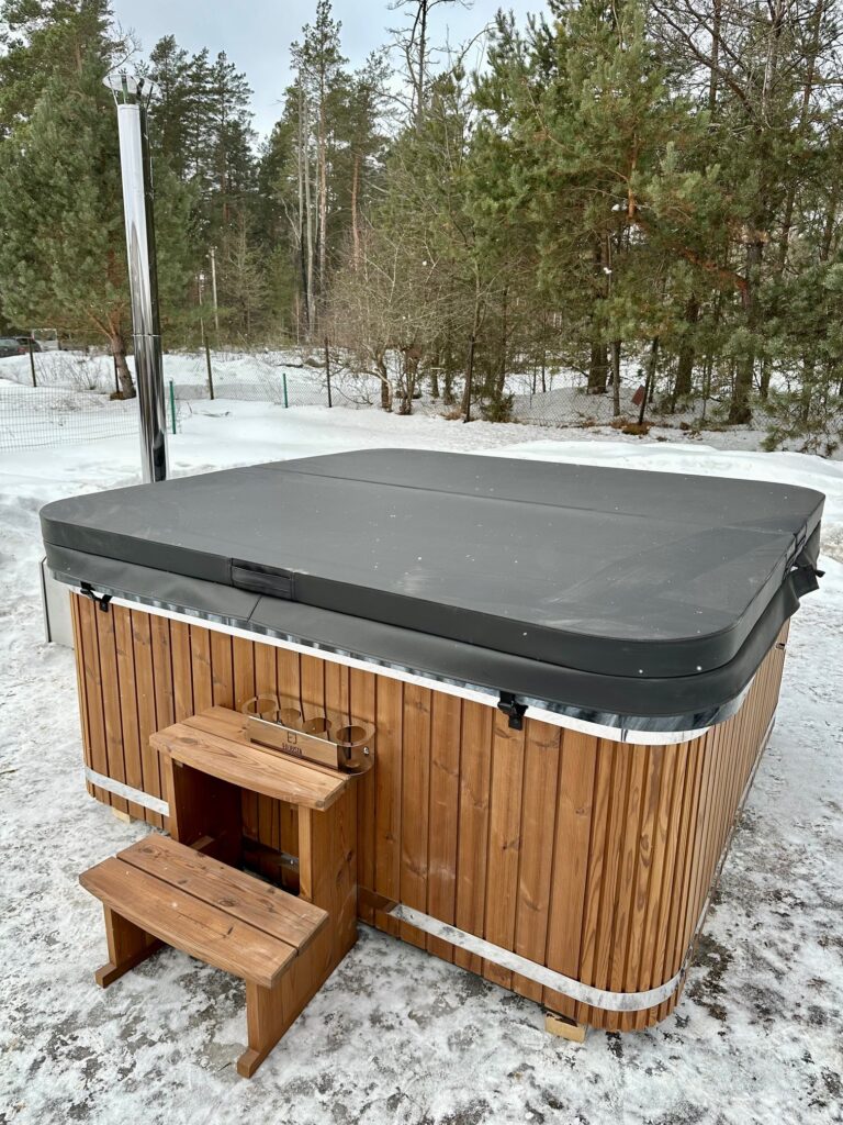 Fyrkantigt badkar – en rymlig och modern modell som kombinerar funktionalitet med modern design. Den kan göras med antingen en akryl- eller plastinsats: akrylinsatsen, formad med vakuumteknik, är lätt att underhålla, mycket hållbar och reptålig, samtidigt som dess ergonomiska form ger optimal komfort. Plastinsatsen, tillverkad av slitstark polypropylen, erbjuder ett större urval av storlekar och utmärkt motståndskraft mot olika miljöfaktorer. En träfinish på utsidan ger ett naturligt estetiskt utseende, medan den inre insatsen gör underhållet enkelt. Fyrkantiga badkar kan värmas med integrerade eller externa vedeldade kaminer, eller elektriska värmare, vilket gör dem till ett pålitligt, modernt och mycket bekvämt val.