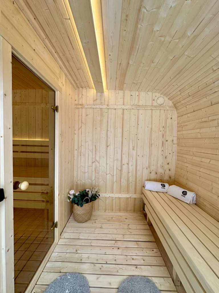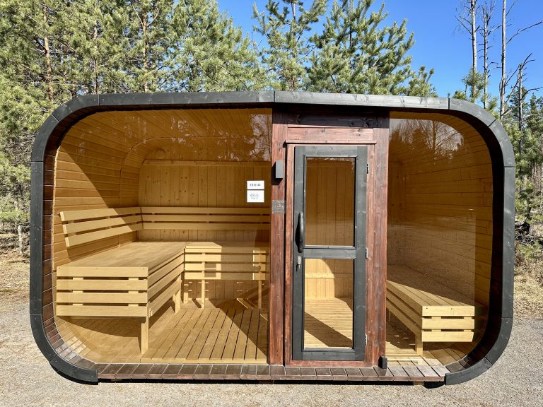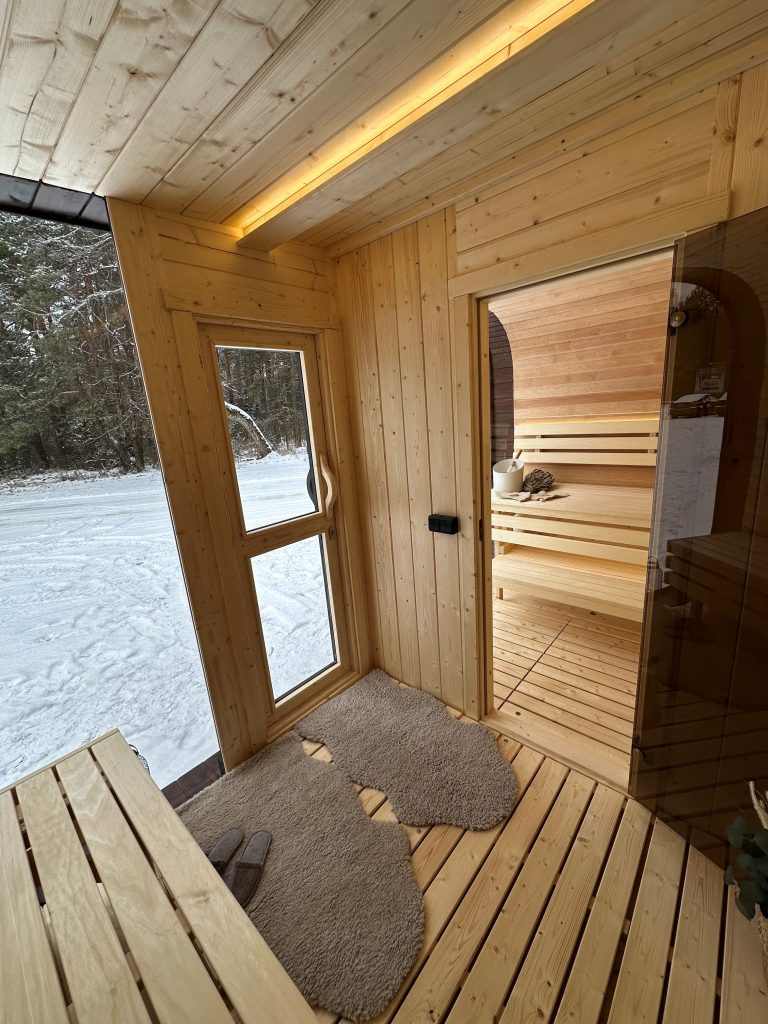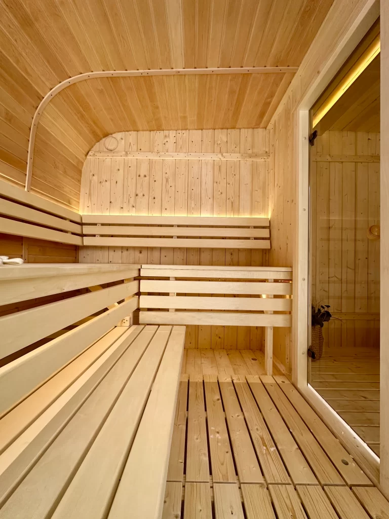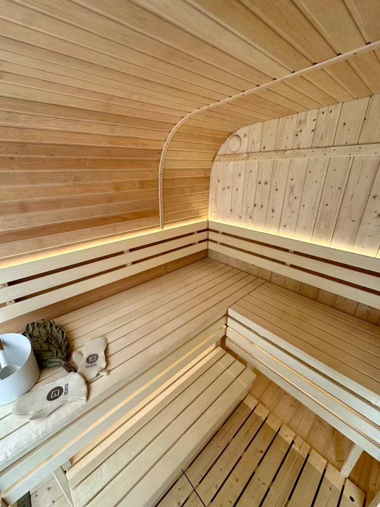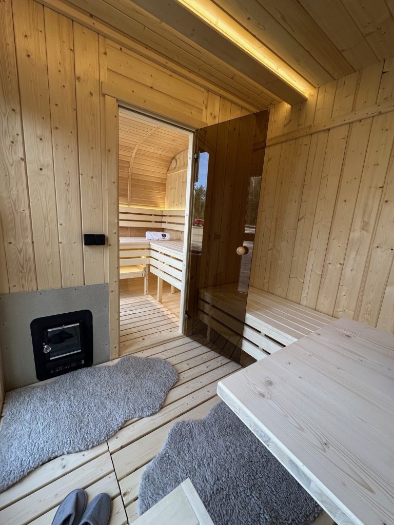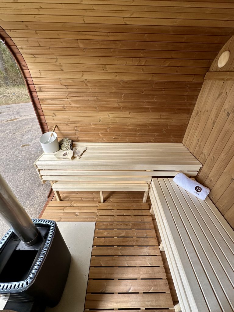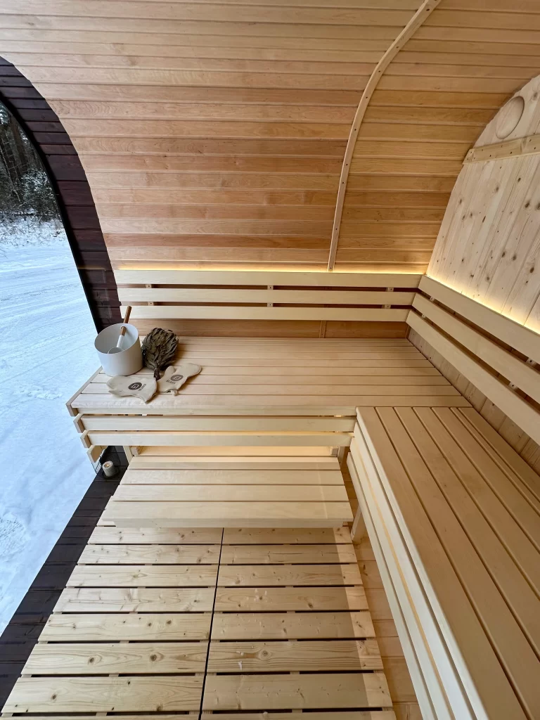 - Ångbastu med bänkar tillverkade av svart al, asp eller thermowood.