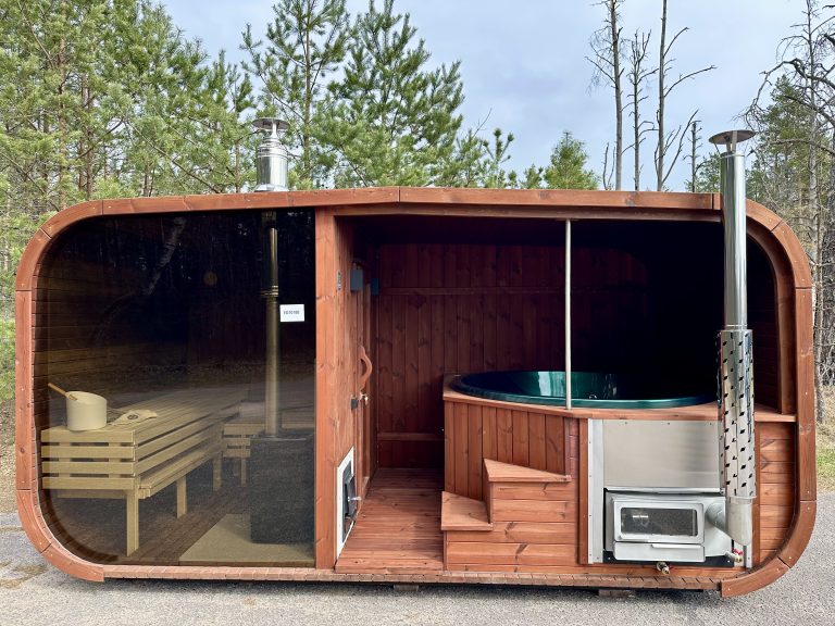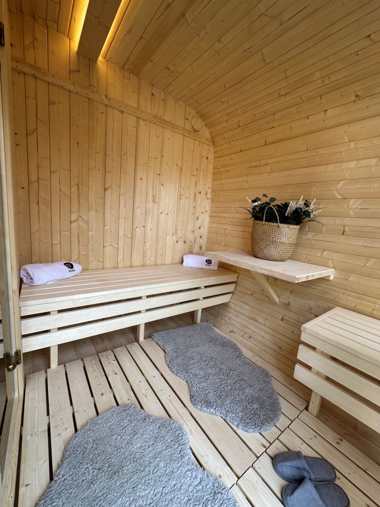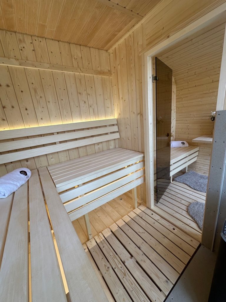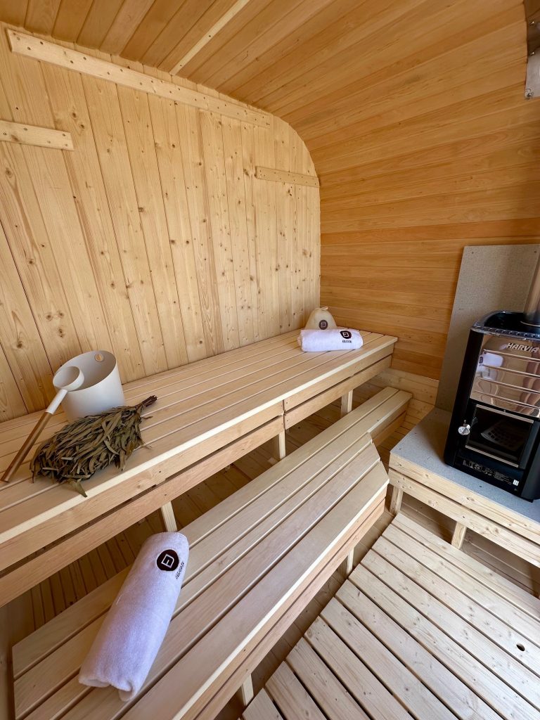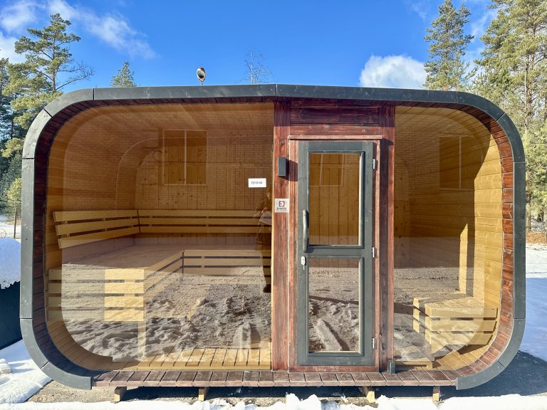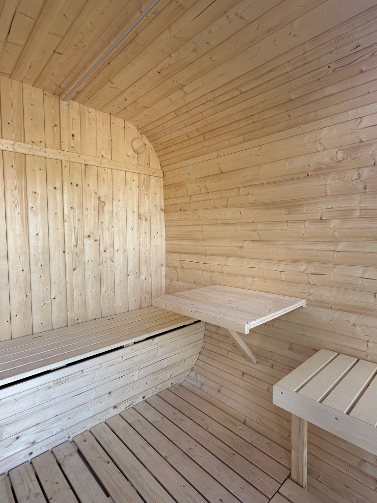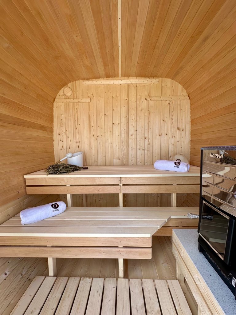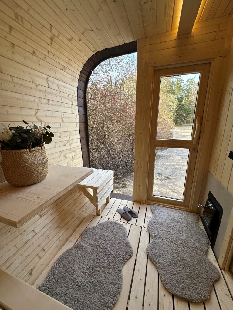 - Ångbastu med bänkar tillverkade av svart al, asp eller thermowood.
