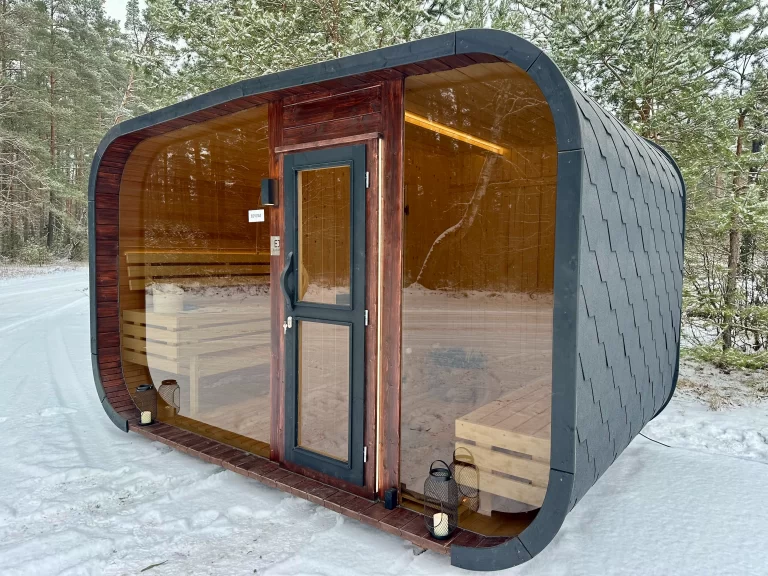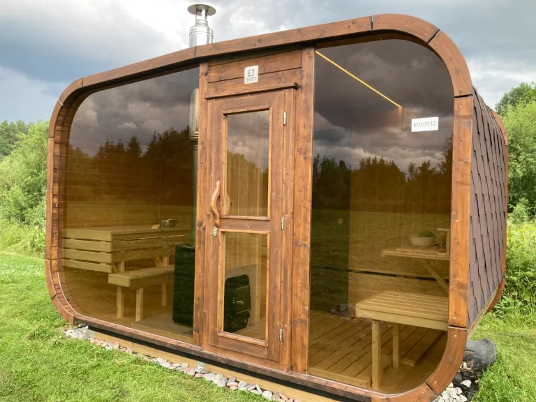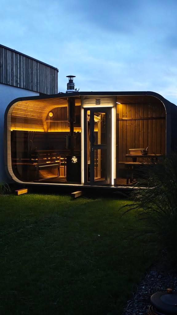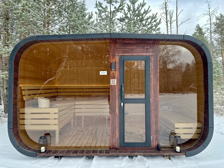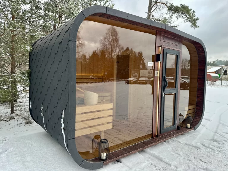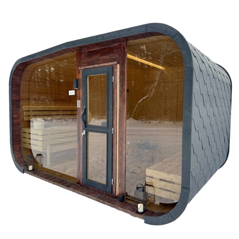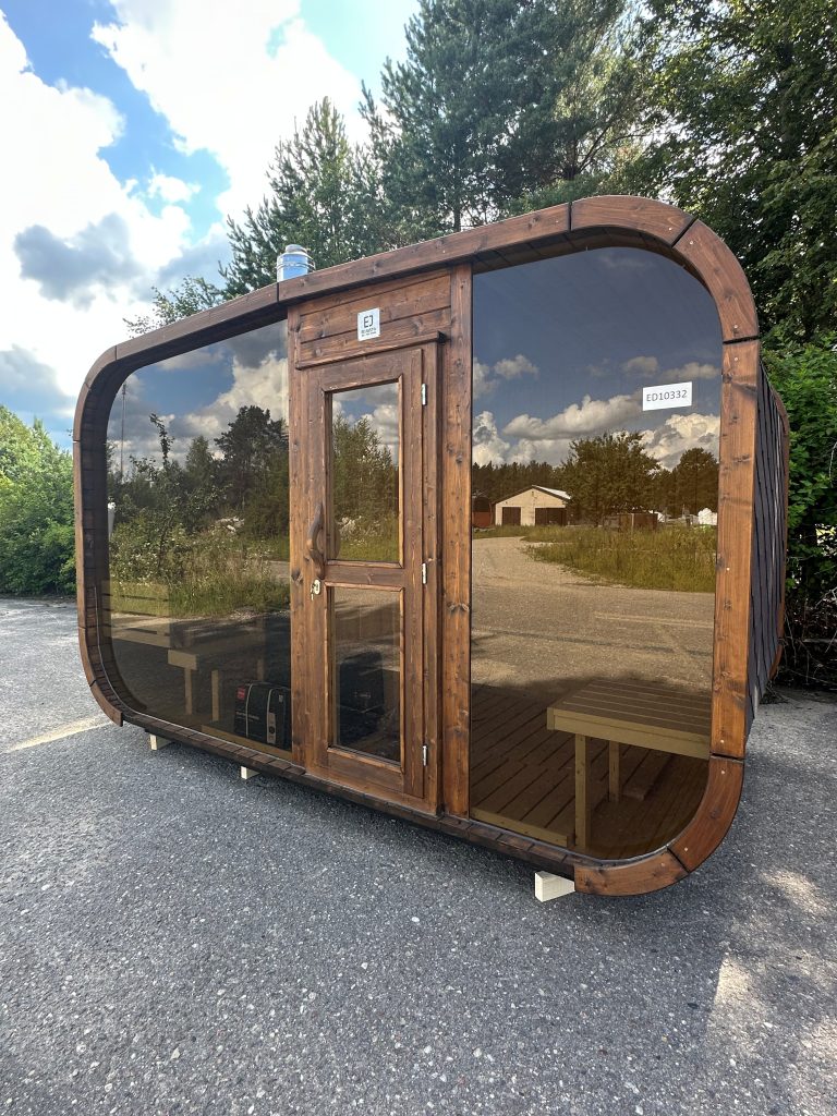 Bastu Cabin har en samtida design med en modern form och utmärker sig med sina stora panoramafönster som skapar en rymlig känsla och låter dig njuta av den underbara utsikten. Den praktiska planlösningen möjliggör tillägg av ett bekvämt omklädningsrum, som kan användas som en avkopplingsyta eller för förvaring. Stilren, funktionell och mysig – denna bastu blir en perfekt plats för avkoppling och värme året om.