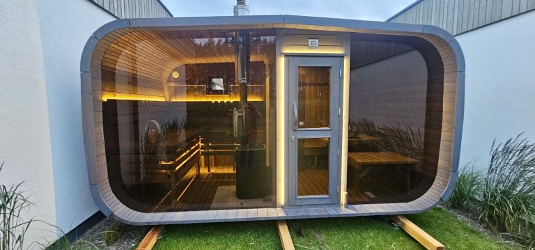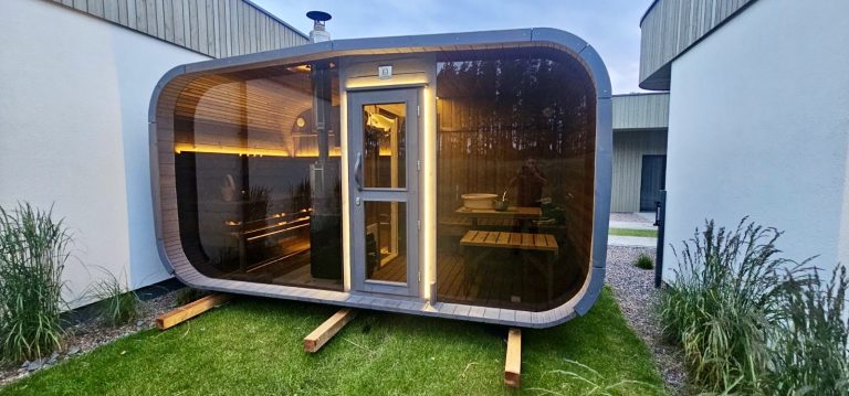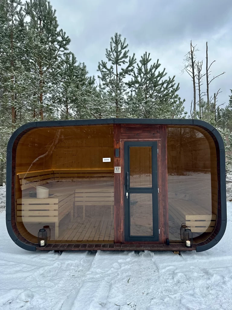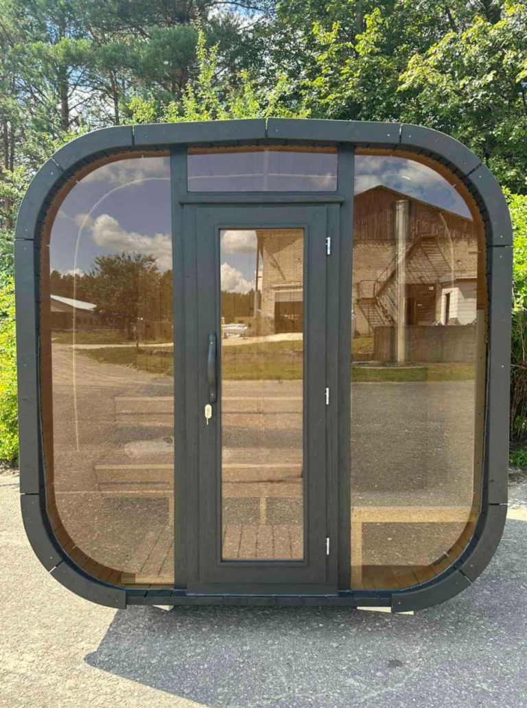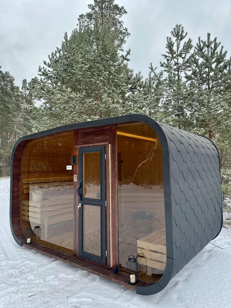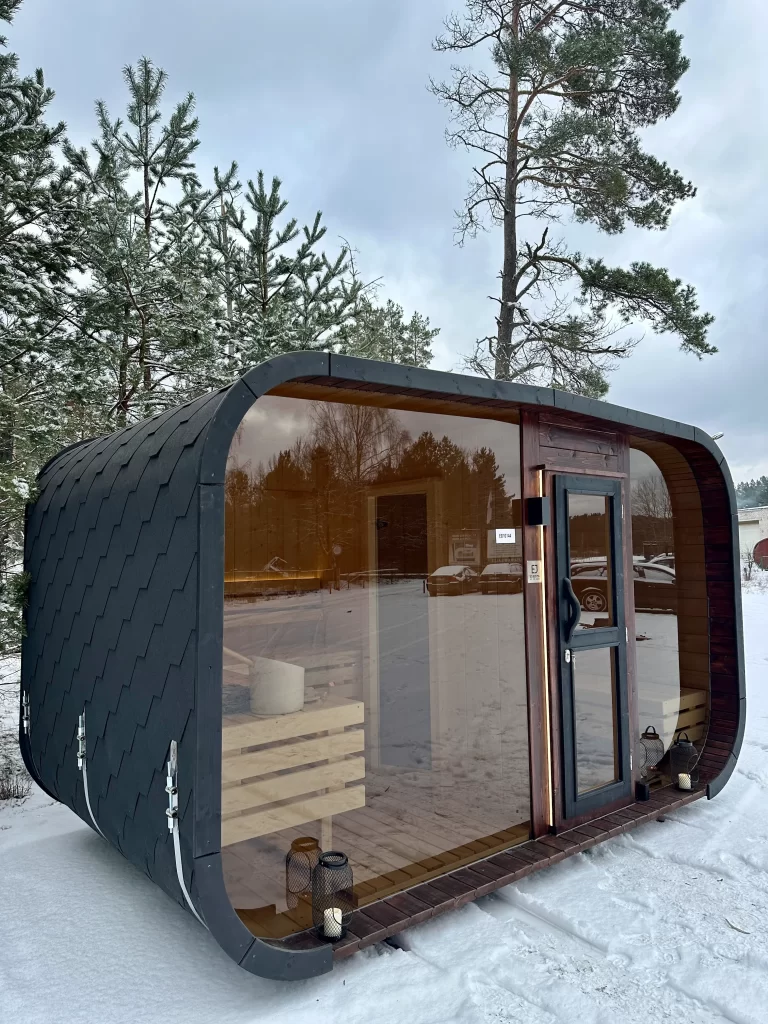 Bastu Cabin har en samtida design med en modern form och utmärker sig med sina stora panoramafönster som skapar en rymlig känsla och låter dig njuta av den underbara utsikten. Den praktiska planlösningen möjliggör tillägg av ett bekvämt omklädningsrum, som kan användas som en avkopplingsyta eller för förvaring. Stilren, funktionell och mysig – denna bastu blir en perfekt plats för avkoppling och värme året om.