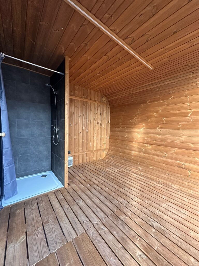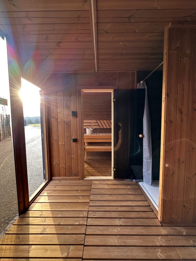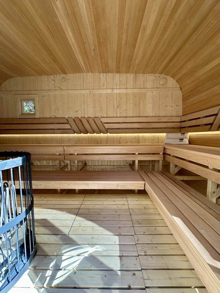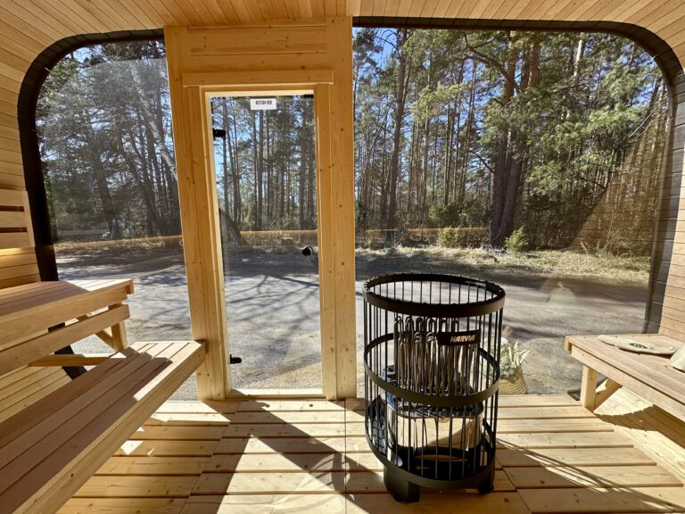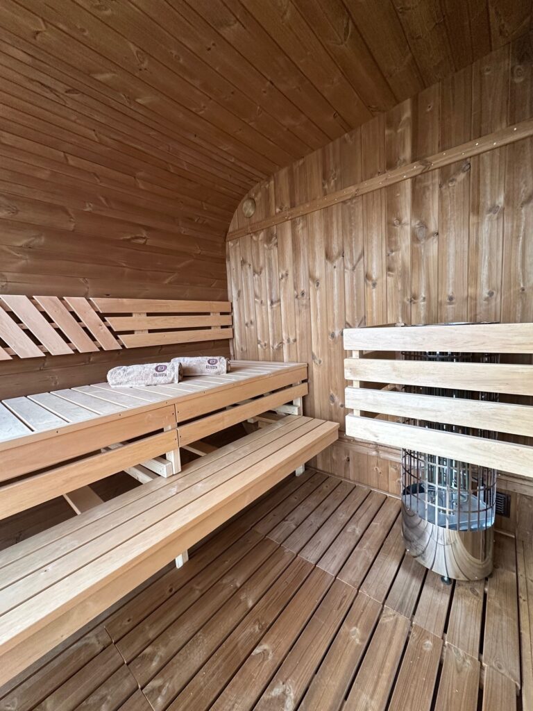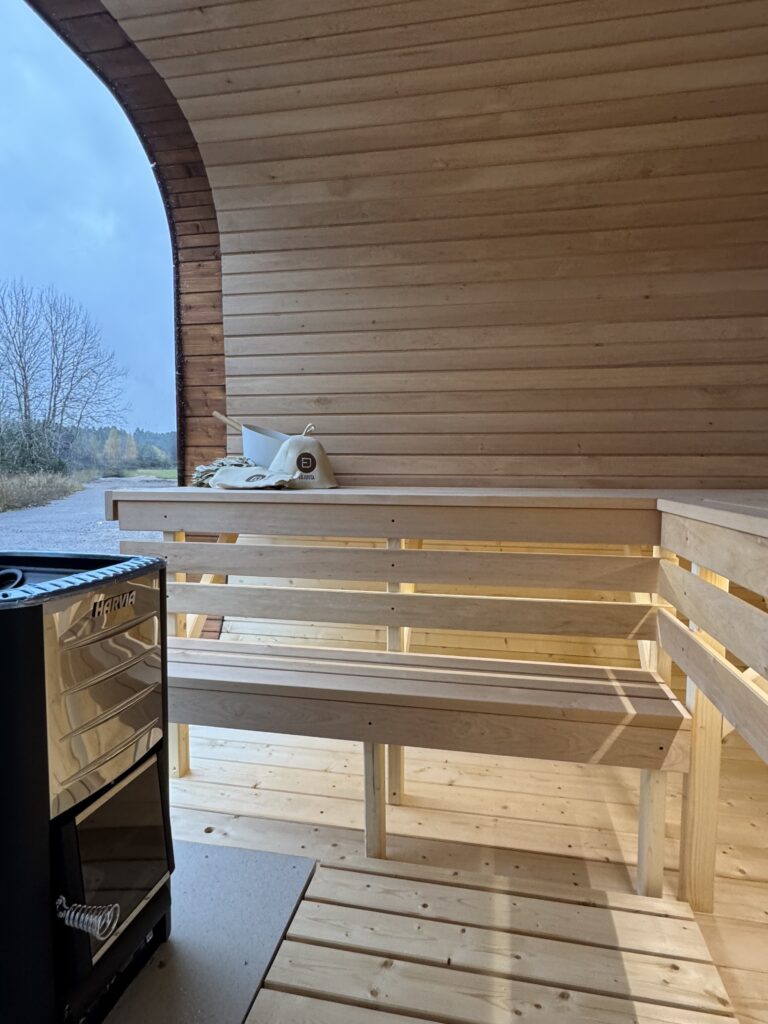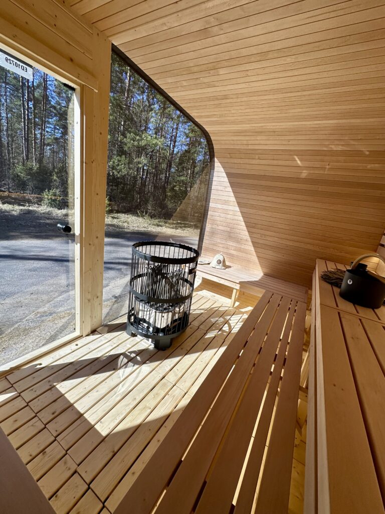 - Ångbastu med bänkar tillverkade av svart al, asp eller thermowood.