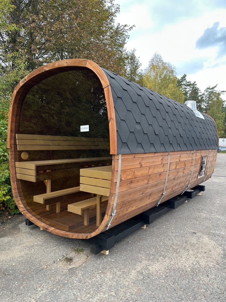 **Kapacitet (antal personer) – En bastu med samma längd, men med omklädningsrum eller en terrass, kommer att rymma färre personer i bastuområdet.