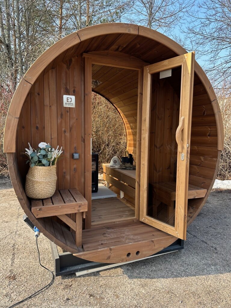 En unik rundad design av tunnbastun kommer att ge ditt hem personlighet och en fantastisk spaupplevelse. Cylindrisk form möjliggör naturlig och kontinuerlig luftcirkulation eftersom luften trycks tillbaka mot de rundade väggarna. Dessutom krävs 23% mindre uppvärmning av utrymmet jämfört med ett liknande rum med hörn. Som ett resultat får du längre ångcykler till lägre kostnad. Våra produkter finns i olika storlekar, träslag och olika set av alternativ. Du kan välja mellan en färdigmonterad eller omonterad bastu som inte kräver stora verktyg för att bygga på egen hand på mycket kort tid.