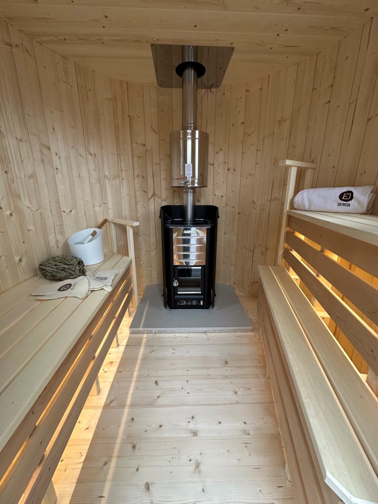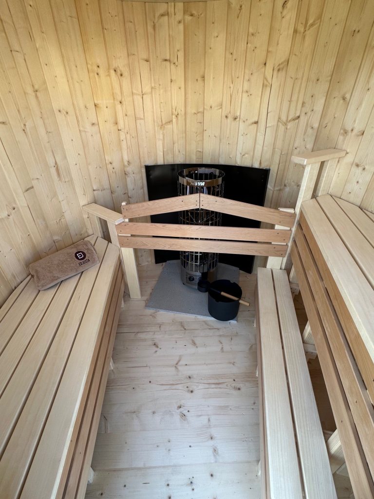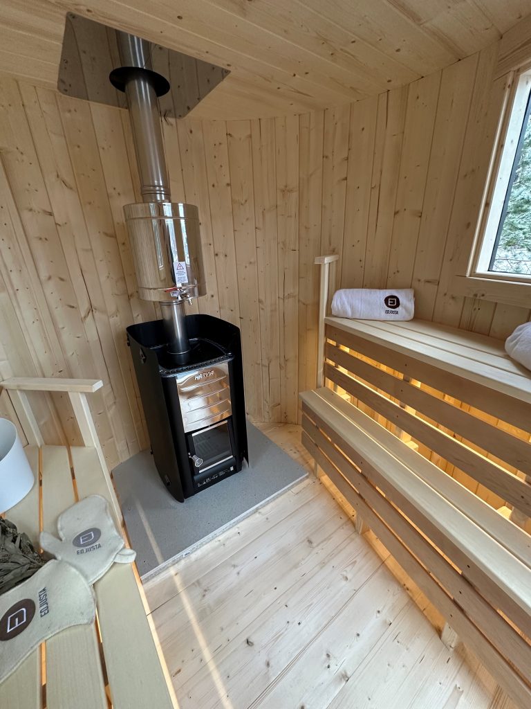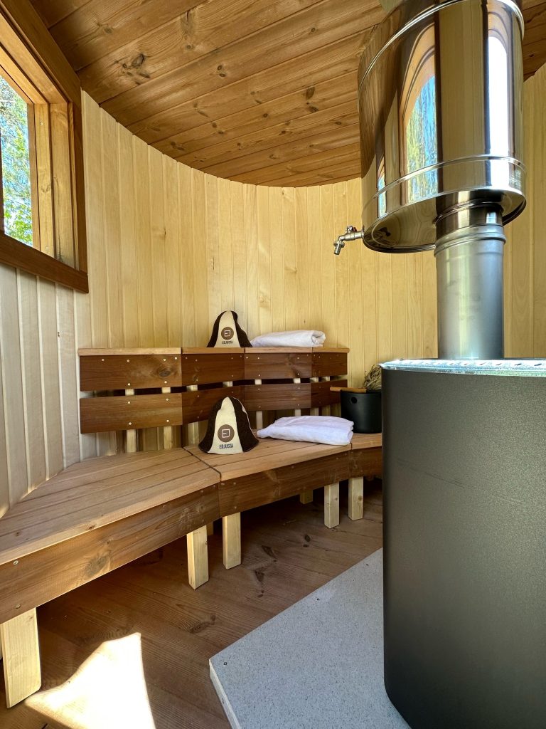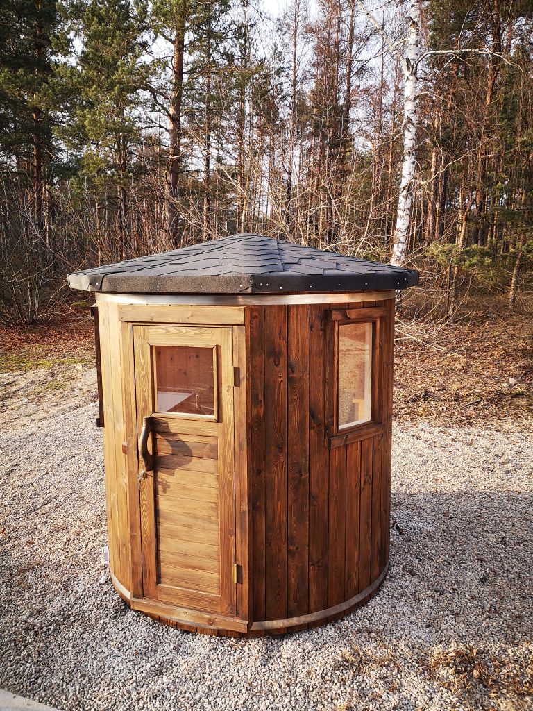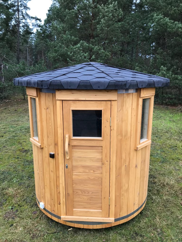 En bastu utformad för personer med begränsat utrymme. Denna lilla modell har alla fördelar med en fullt fungerande bastu och är perfekt för par eller små familjer.