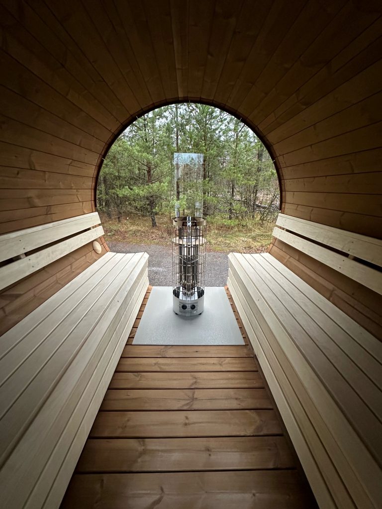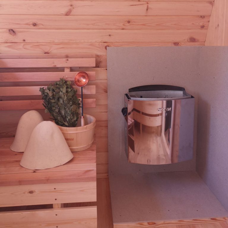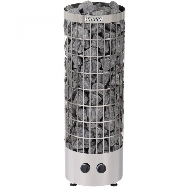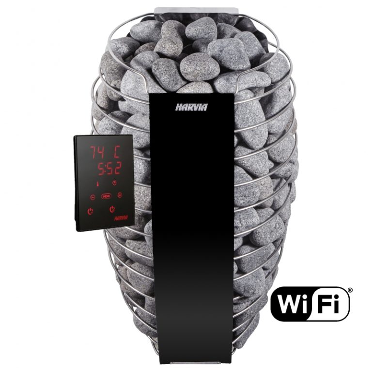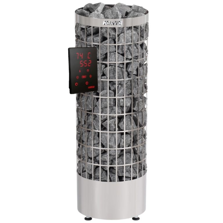 Harvia Cilindro elektriska värmare finns också tillgängliga med en extern kontrollpanel som hjälper dig att slå på bastuvärmaren på distans och säkert styra andra funktioner i bastuområdet.