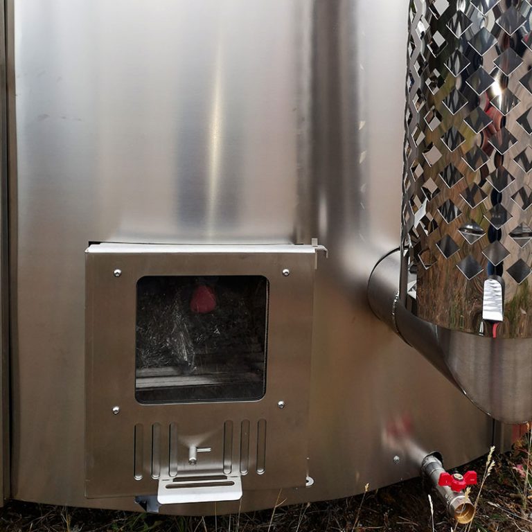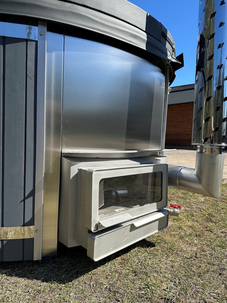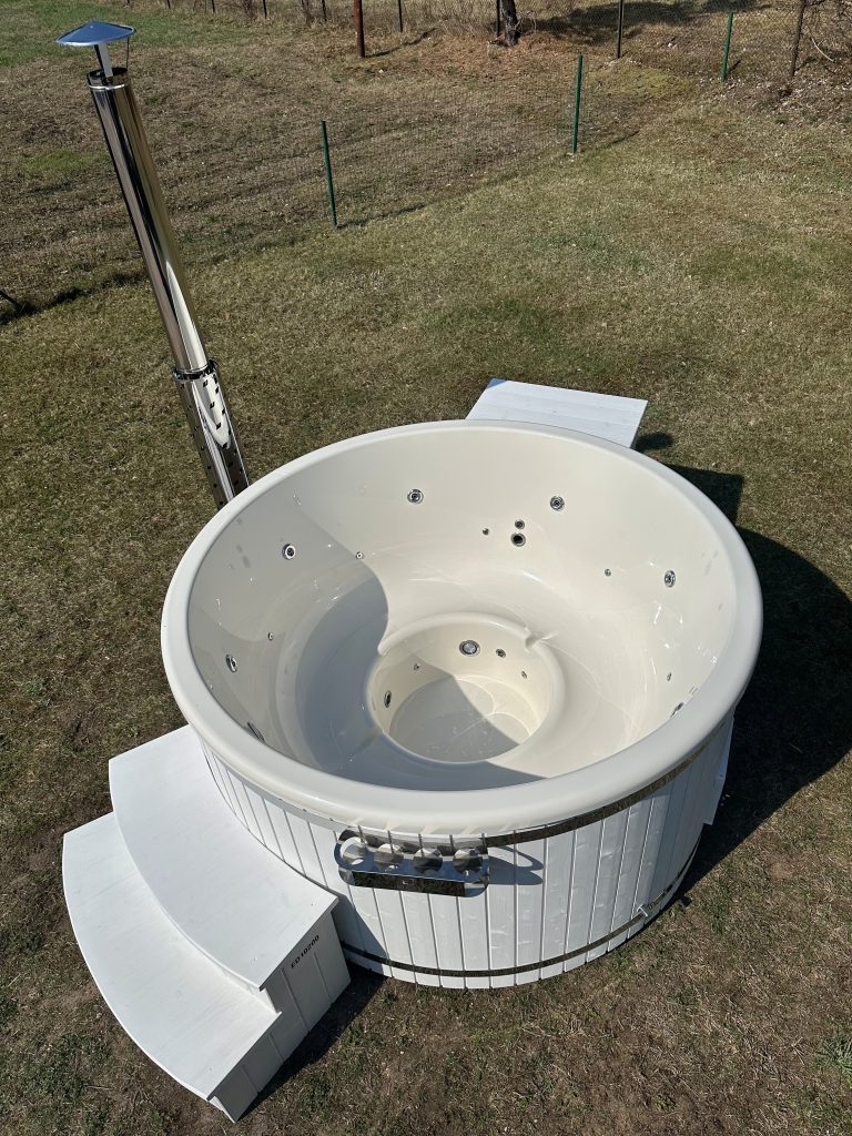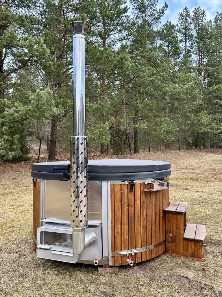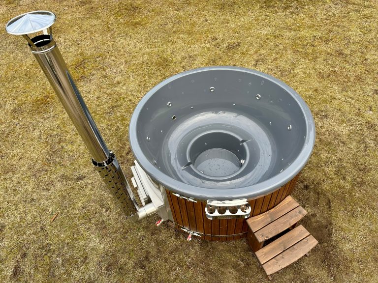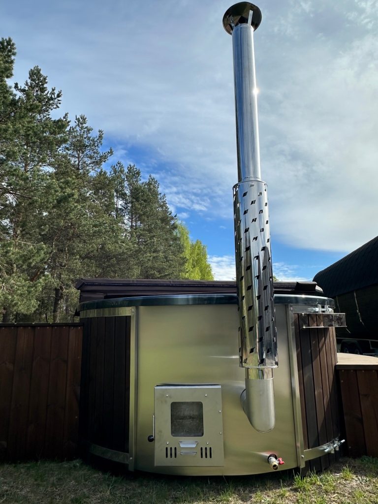 Integrerade värmare erbjuder snabbare uppvärmningstid än externa vedeldade spisar eftersom det nästan inte förekommer någon värmeförlust. En av de största fördelarna med integrerade värmare är deras externa vedförsörjning. Den externa försörjningen gör att du säkert kan fylla på veden och ta bort askan utan att förorena vattnet. En integrerad kamin är dold inuti badtunnan och bildar en trappa eller som vi kallar det en barnstol, som kan användas för att sitta för barn eller för vuxna att vila, vilket gör denna badtunna perfekt för familjer.